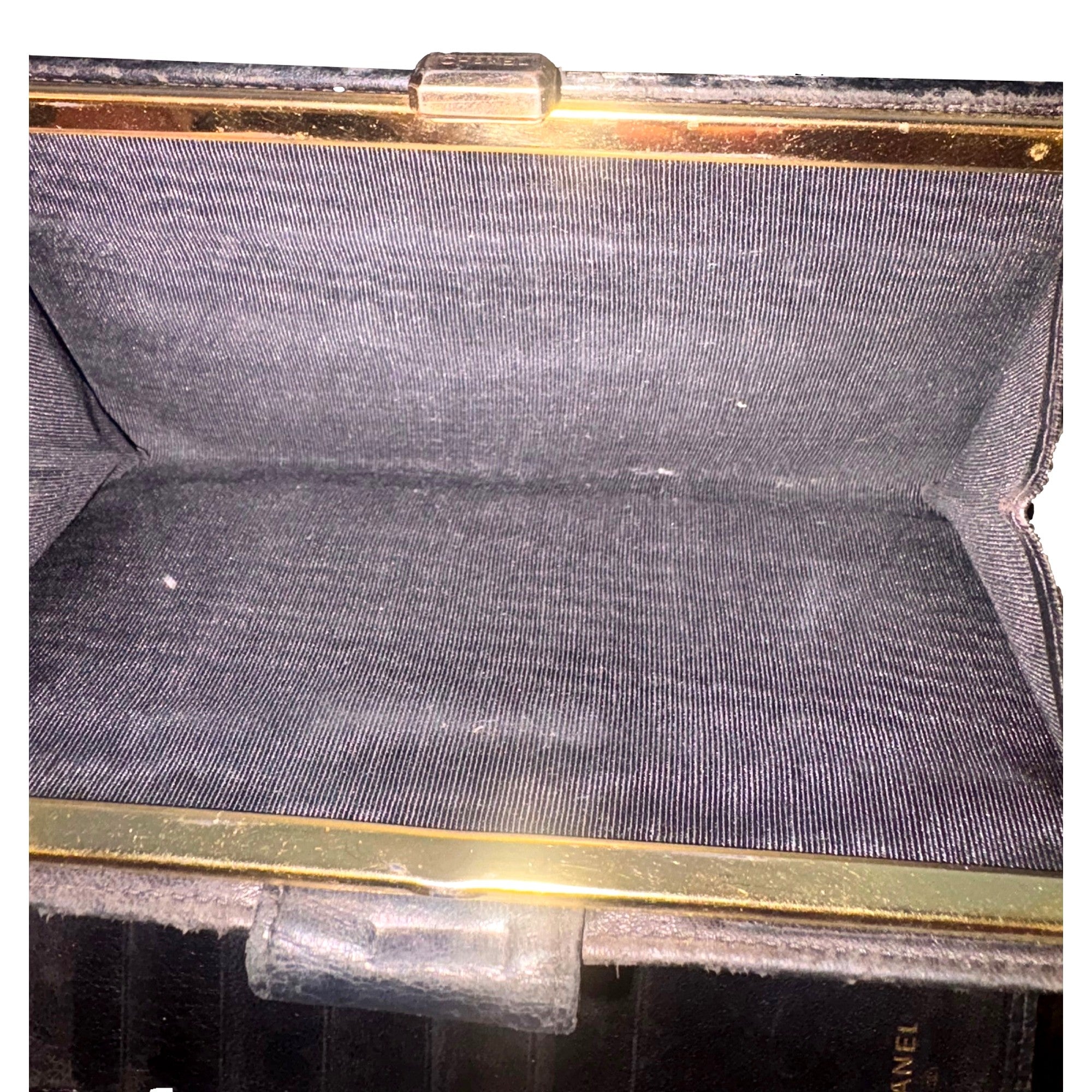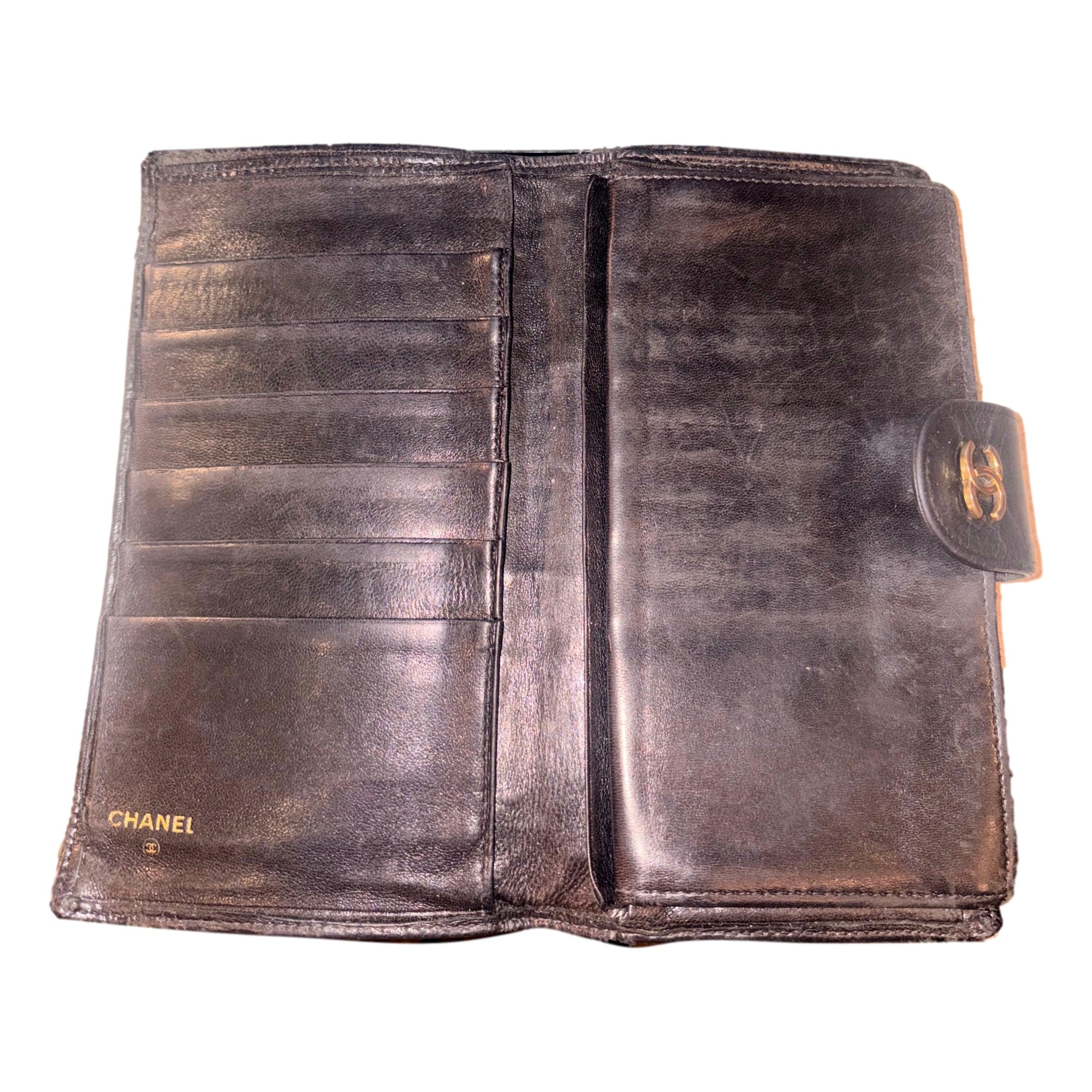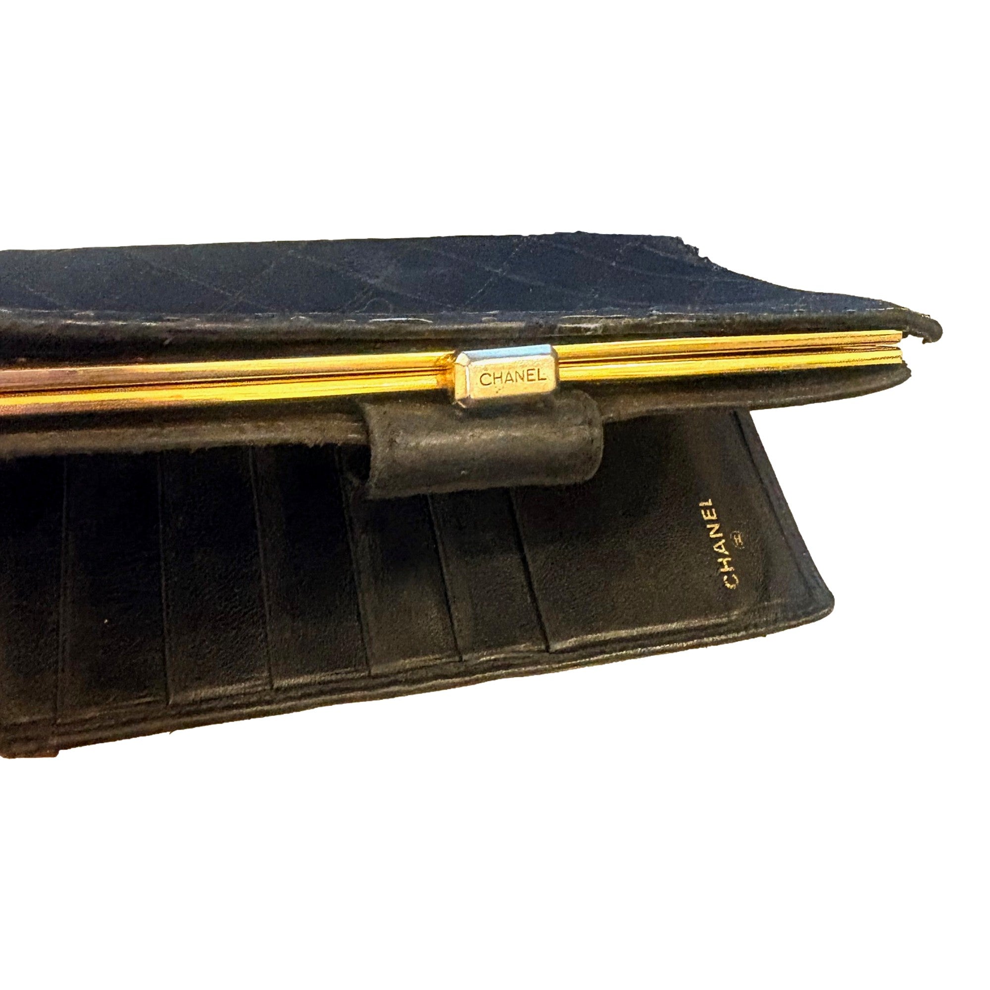 Chanel Vintage Interlocking CC Black Lambskin Quilted Wallet with Coin Compartment