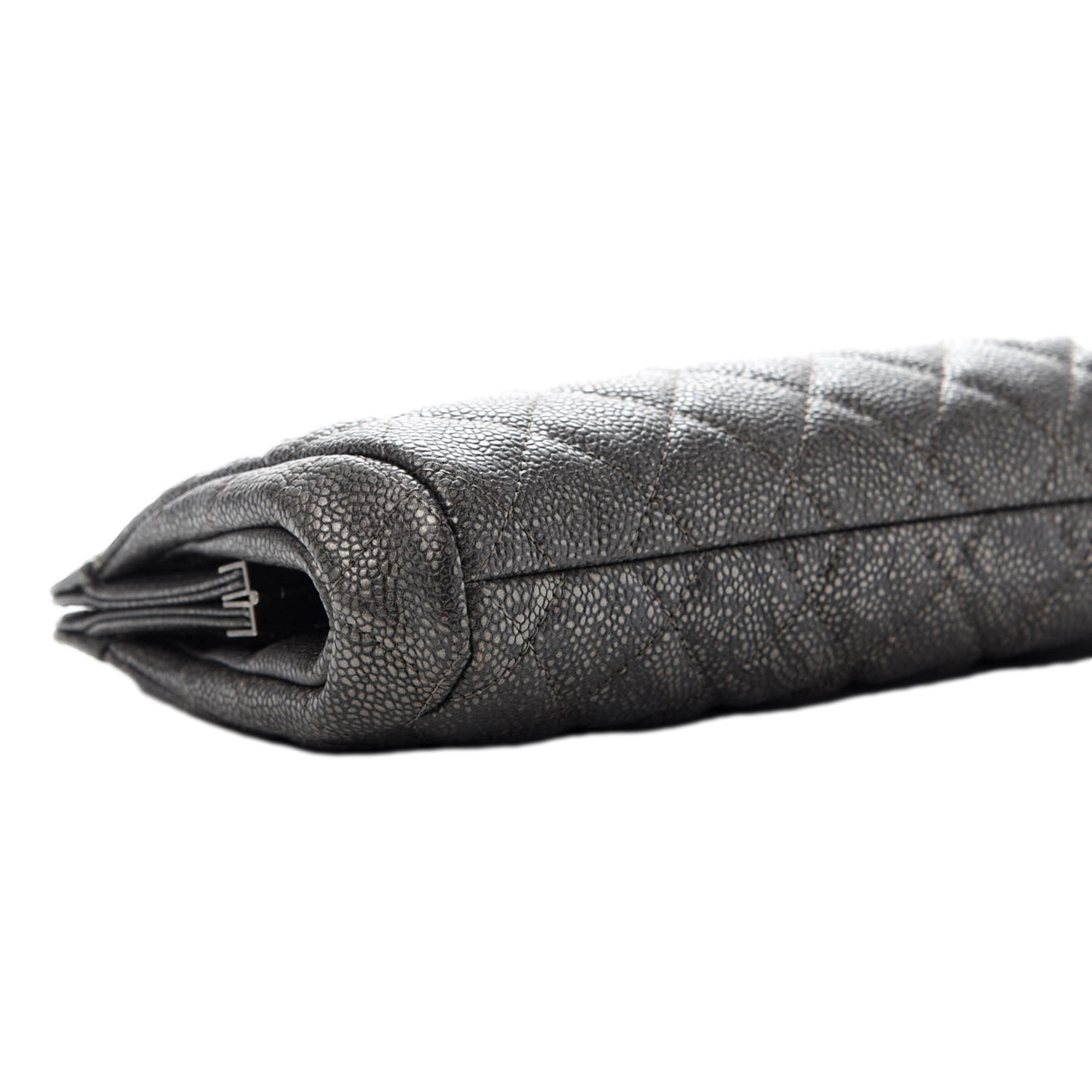Chanel Caviar Black Leather CC Frame Medium Clutch Handbag
