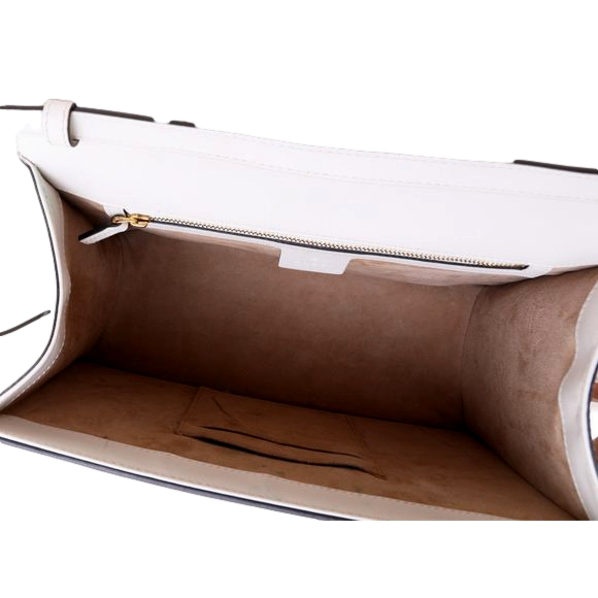 Elevate your style with the Gucci Medium Sylvie Embroidered Top Handle Bag. Crafted from luxurious neutrals leather with signature Sylvie Web accent and gold-tone hardware, it's both timeless and chic. Featuring flat handle, adjustable shoulder strap, and turn-lock closure, it's as practical as it is stylish. With exquisite embroidery, chain-link accents, suede lining, and three interior pockets, it's the epitome of luxury.