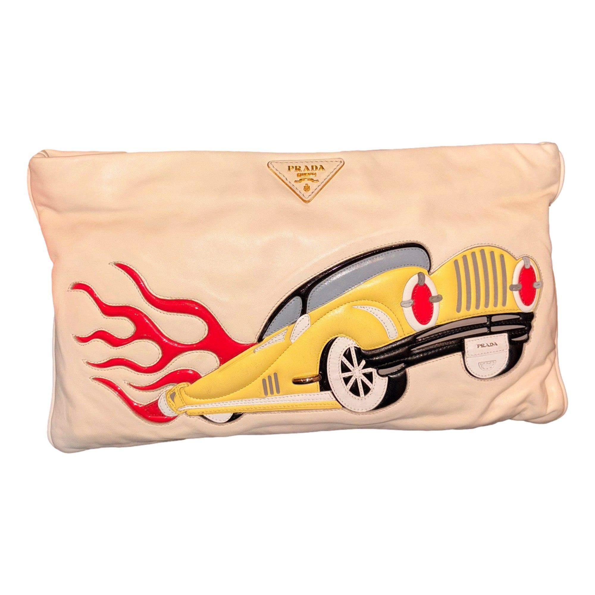 Prada 'Hot Rod Culture' Car Applique White Leather Handbag Clutch
