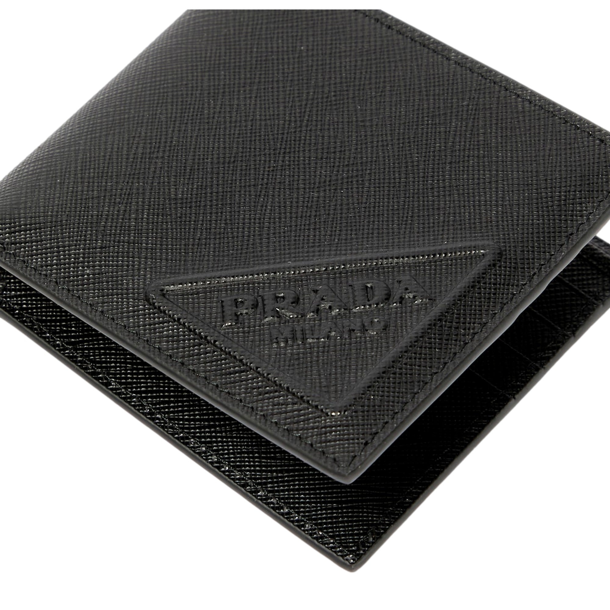 Prada Saffiano Leather Bifold Card Wallet Triangle Embossed Logo Black