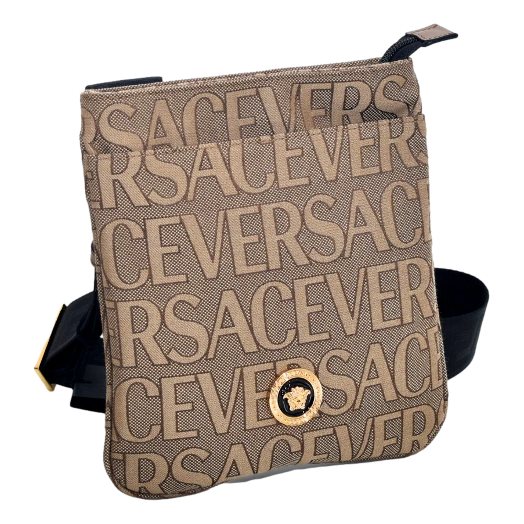 Discover effortless elegance with the Versace Canvas La Medusa Logo Print Small Crossbody Bag. Crafted from premium canvas, this compact silhouette is adorned with the iconic La Medusa logo print, blending contemporary style with timeless Versace heritage. Lightweight yet refined, it features sleek detailing and a versatile crossbody strap for chic, hands-free wear. Perfect for daily outings or elevated casual looks, this small statement piece delivers luxury in every detail.