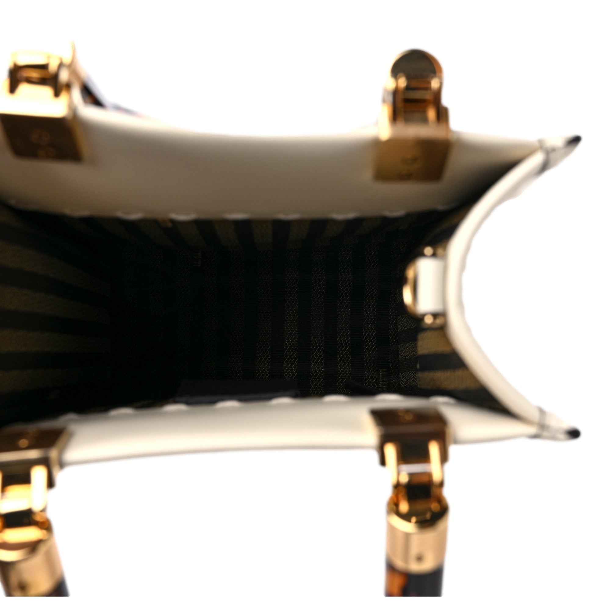 Elevate your everyday style with the Fendi Nude Calfskin Snake Print Mini Sunshine Shopper. Crafted in Italy from luxurious nude calfskin leather with an exotic snake print Fendi Roma logo, this compact yet statement-making tote exudes effortless elegance. Featuring signature tortoiseshell plexiglass top handles, gold-tone hardware, and an adjustable crossbody strap, it seamlessly blends sophistication with functionality. A true icon of modern luxury, perfect for day-to-night refinement