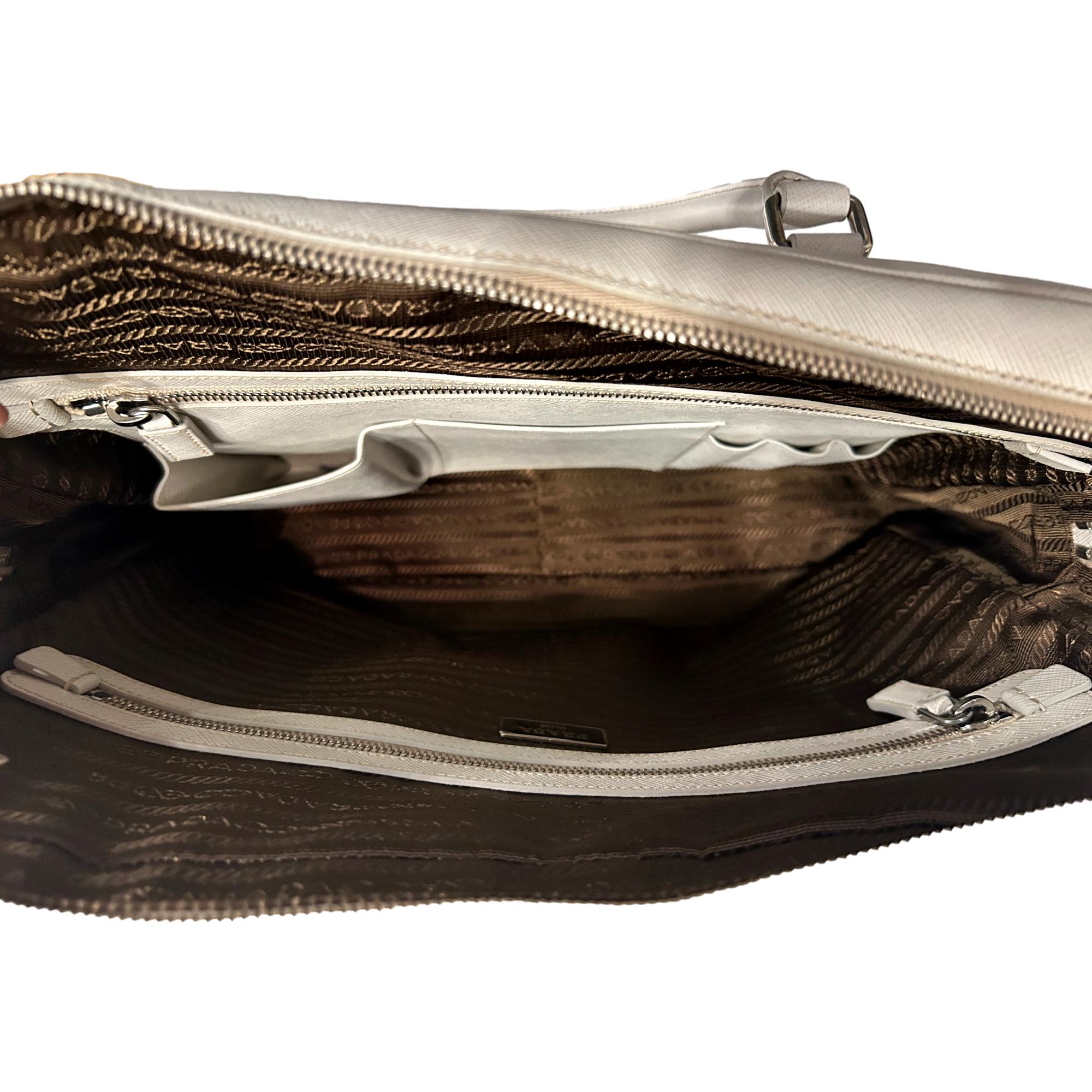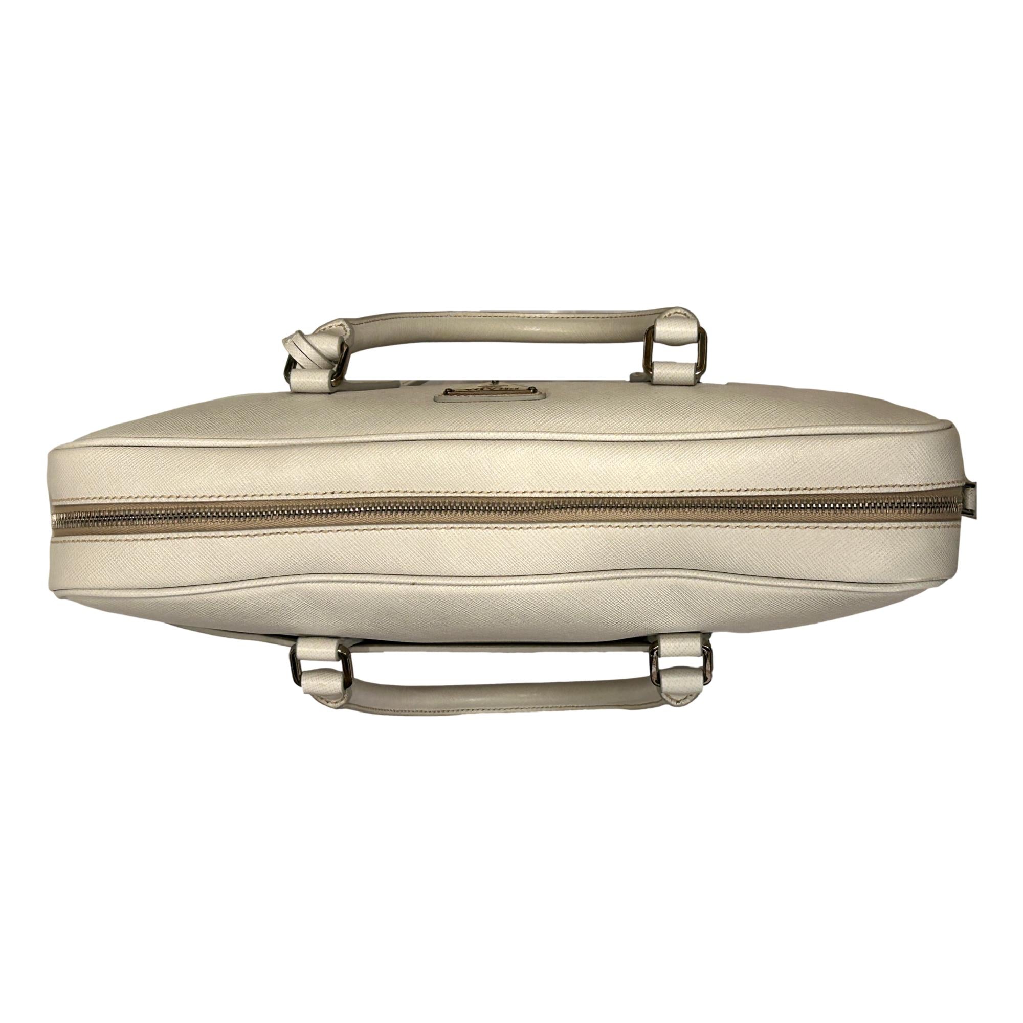 Prada Saffiano Ivory Leather Satchel Weekender Travel Tote Bag Crossbody