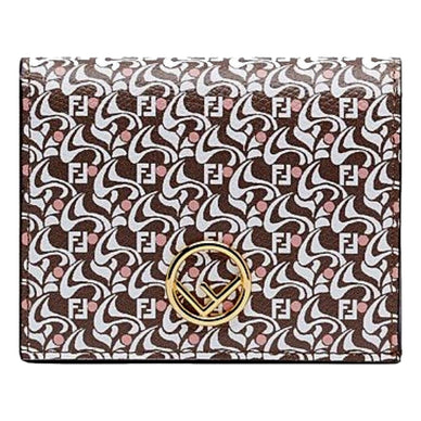 Fendi Calf Leather F Logo Brown Pink Small Bifold Wallet
