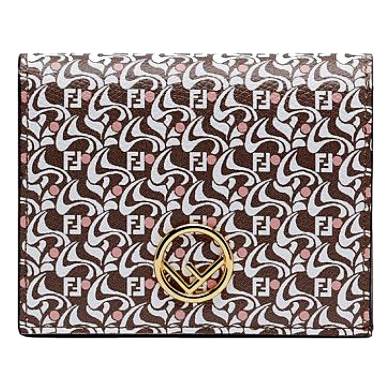 Fendi Calf Leather F Logo Brown Pink Small Bifold Wallet available at Queen Bee of Beverly Hills