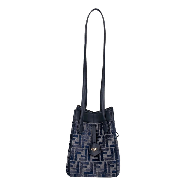 Fendi FF Origami Mini Sac Jacquard Canvas Leather Blue Handbag