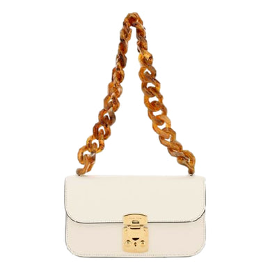 Miu Miu Madras White Leather Tortoise Shell Chain Handbag