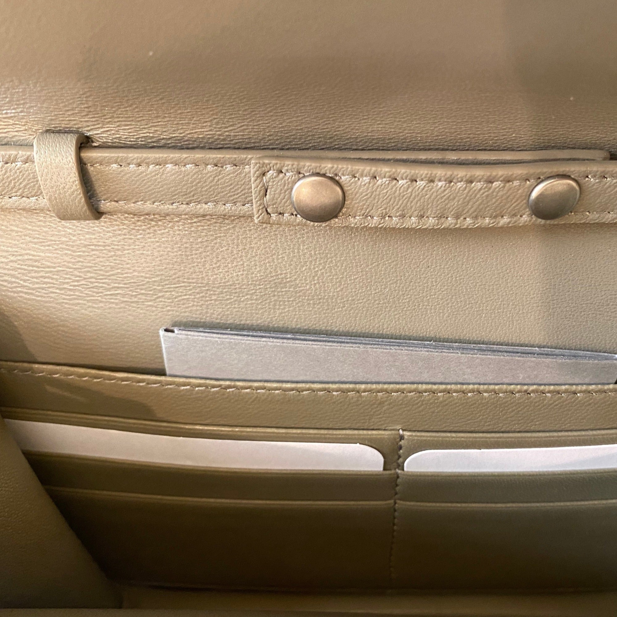 This wallet on chain is crafted with python printed calfskin leather. The fold-over flap top magnetic snap closure opens to a grey leather lined interior with a bill slot, credit card slots, and a zipper pocket. The detachable gun metal chain allows for this piece to be carried on the shoulder or as a clutch. This chic wallet on chain is perfect for day or a night out, with the distinctive style and quality of Balenciaga!