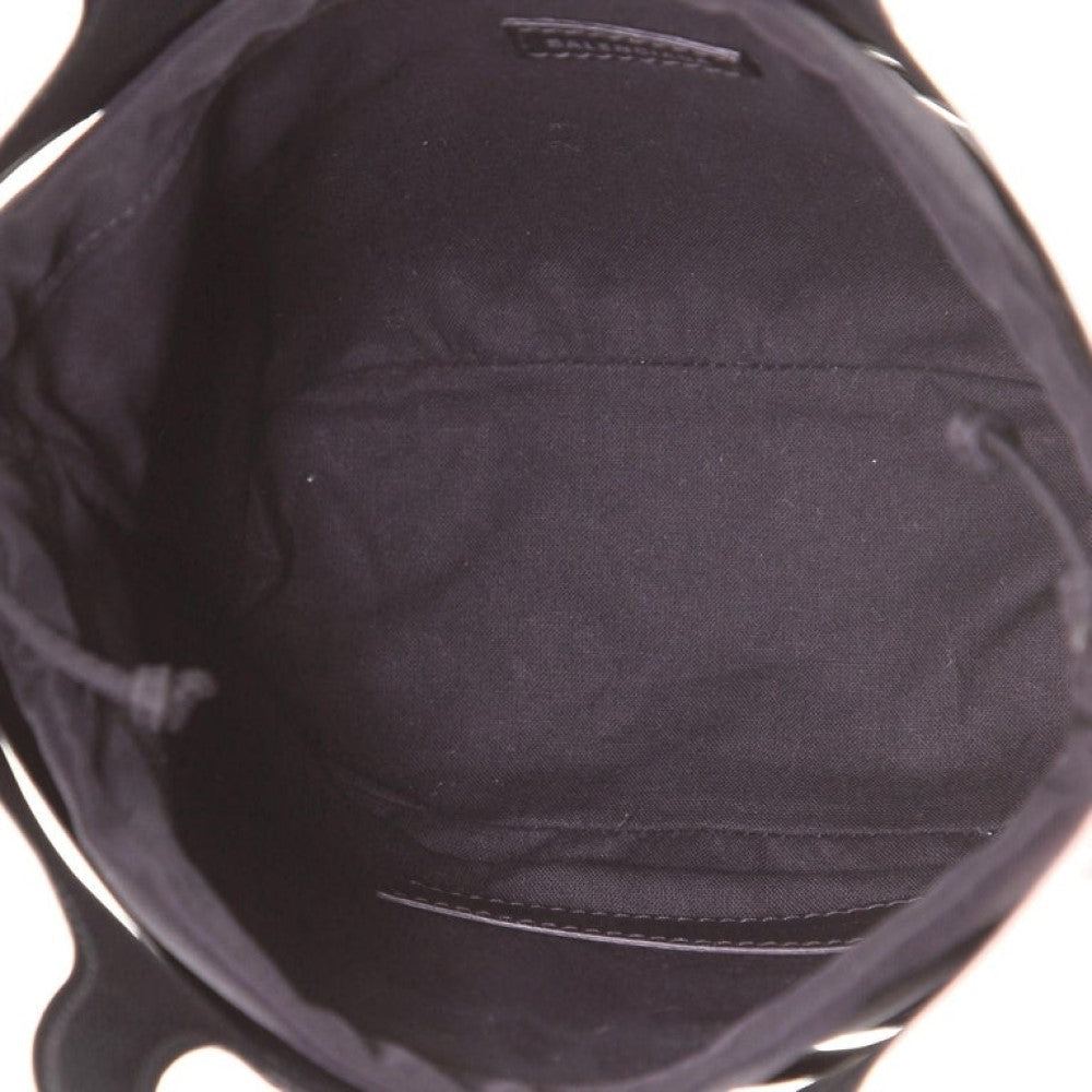 - Removable black nylon interior drawstring pouch with four exterior pockets