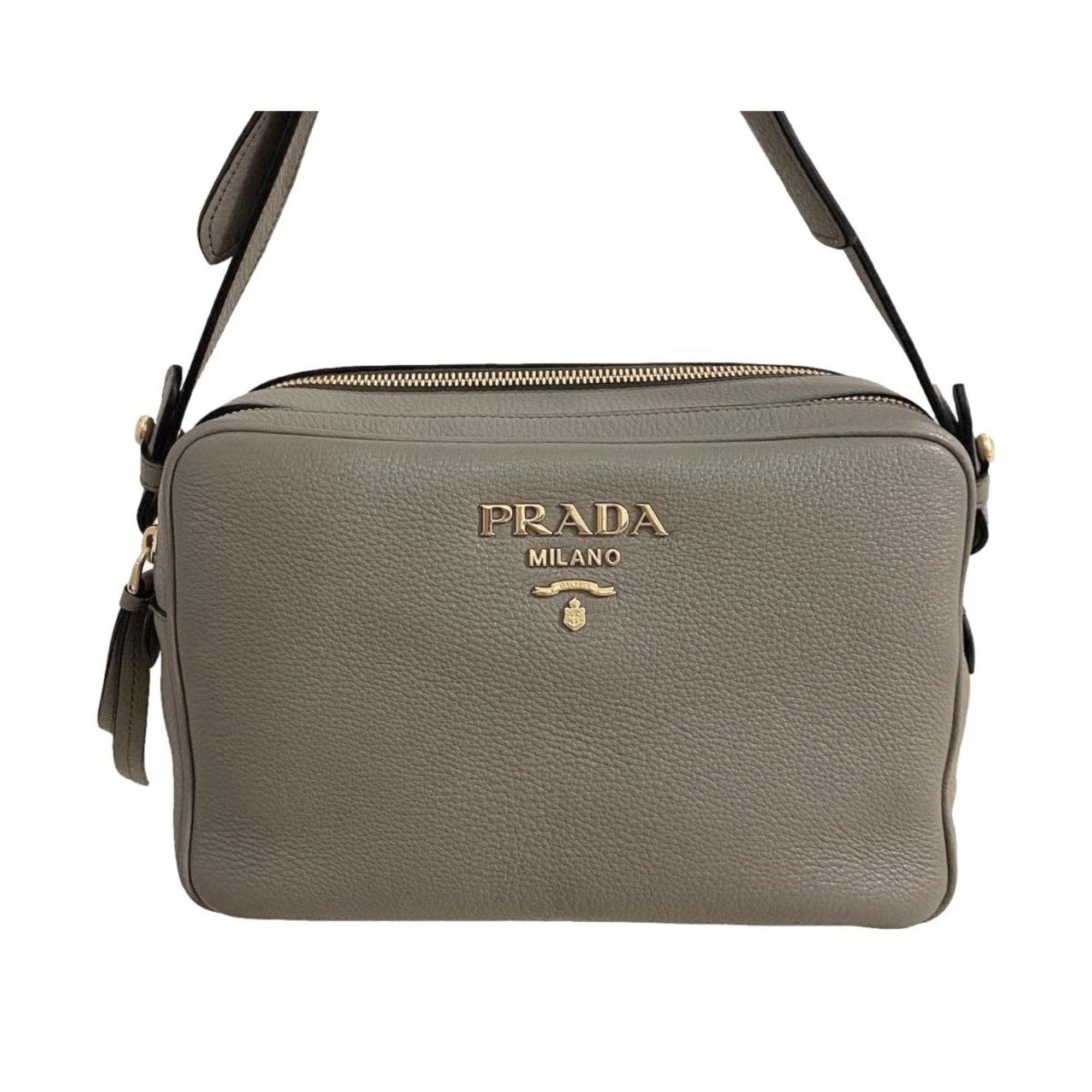 Prada Argilla Grey Vitello Phenix Leather Double Zip Cross Body Bag