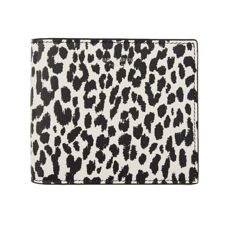 Saint Laurent BabyCat Leopard Print Black and White Leather Bifold Wallet available at Queen Bee of Beverly Hills