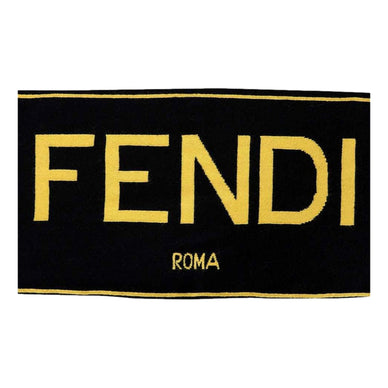 Fendi Roma Knitted Wool Cashmere Black Yellow Logo Scarf