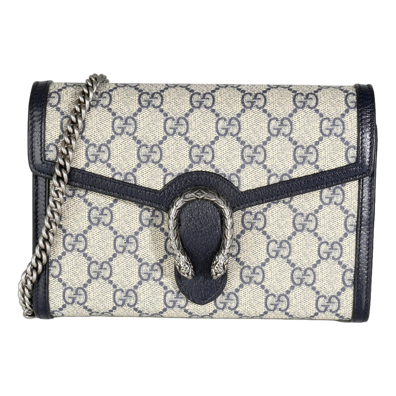 Gucci Navy GG Supreme Canvas Mini Dionysus Chain Wallet