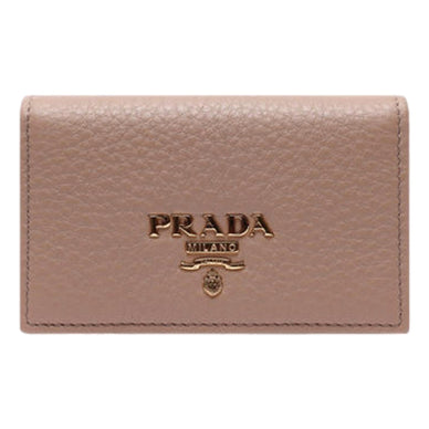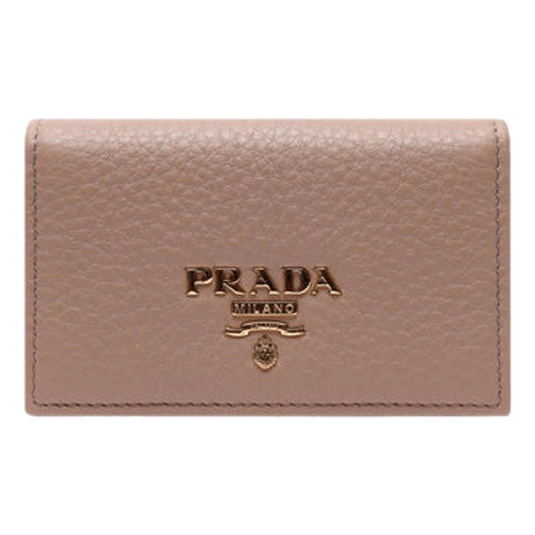 Prada Women's Vitello Grain Cammeo Beige Leather Card Case Wallet