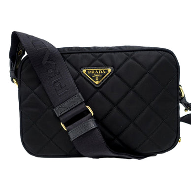 Prada Tessuto Black Quilted Nylon Triangle Logo Camera Crossbody Bag
